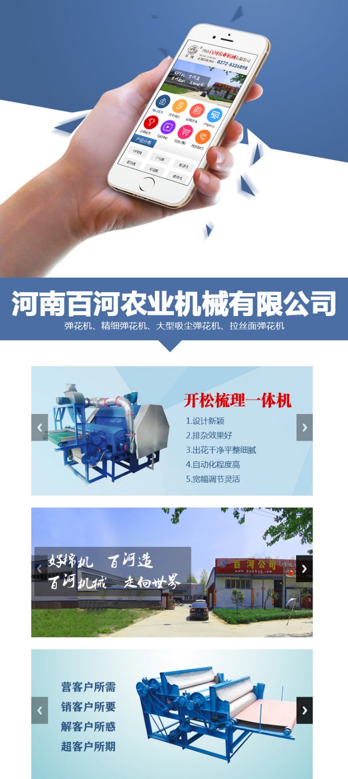 河南百河農(nóng)業(yè)機(jī)械有限公司主要生產(chǎn)彈花機(jī)、精細(xì)彈花機(jī)、大型吸塵彈花機(jī)、拉絲面彈花機(jī)、寬幅彈花機(jī)、梳理機(jī)、開松梳理一體機(jī)、精細(xì)梳理機(jī)、梳棉機(jī)、電腦絎縫機(jī)、絎縫機(jī)、全移動絎縫機(jī)、引被機(jī)、直絎機(jī)、軋花機(jī)、20片軋花機(jī)、鋸齒軋花機(jī)、揉棉機(jī)、無網(wǎng)被揉棉機(jī)、升降揉棉機(jī)、開松機(jī)、小型開松機(jī)、鋪網(wǎng)機(jī)、自動喂花機(jī)等家紡機(jī)械。