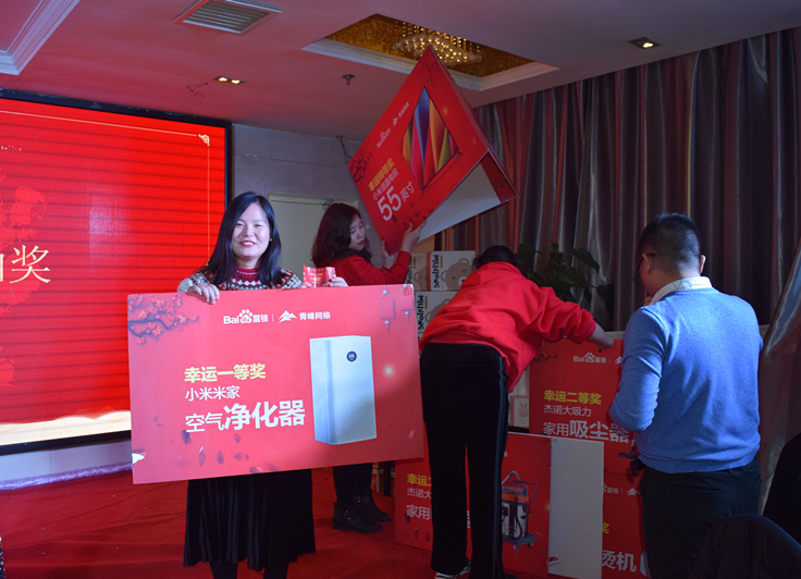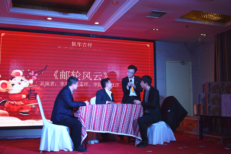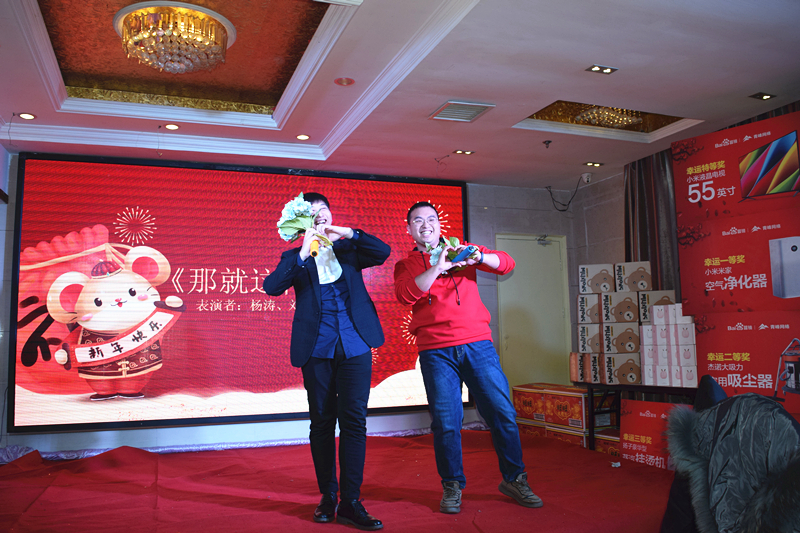 簽到篇 看到嗎?大獎(jiǎng)已經(jīng)準(zhǔn)備好了?。?/p> 美酒美食上桌 簽到了小伙伴們??! 一聲簽到了,瞬間排起長(zhǎng)龍! 美麗帥氣的主持人準(zhǔn)備開場(chǎng)! 2020,恭喜發(fā)財(cái),萬(wàn)事如意,笑口常開! 大獎(jiǎng)非你莫“鼠”! 節(jié)目篇 一聲開門紅,開啟節(jié)目篇,將答謝會(huì)的熱情推向波高潮!祝福大家來(lái)年紅紅火火??! “歌神”一亮相,小迷妹們立刻集結(jié),演唱會(huì)模式瞬間開啟, oh my god!唱的也太好聽(tīng)了吧! 營(yíng)銷部小品《郵輪風(fēng)云》,完全顛覆了日常形象, 妥妥的小品“扛把子”誕生了! 吉他彈唱一首《晴天》,把我們瞬間帶進(jìn)美好的校園愛(ài)情的回憶,青峰人真是太多才多藝! 百度推廣部帶我們一起左邊畫個(gè)龍,右邊畫一道彩虹,兩個(gè)食指就像兩只穿天猴,指向閃耀的燈球?。?! 游戲篇 愛(ài)的魔力轉(zhuǎn)圈圈,一條大紅布圈起明年的好運(yùn)來(lái)! 氣球運(yùn)杯,你來(lái)我往,一會(huì)兒運(yùn)氣爆棚! 好運(yùn)連連,一件大T恤,連接起你我他!happy?。?/p> 篇 千呼萬(wàn)喚篇即將來(lái)襲,你可能不知道,大家因?yàn)榫o張的手都在顫抖! 然而,你可能想象不到,今年的大獎(jiǎng)在輪就被抽走了!??!臺(tái)下的小伙伴們,瞬間心死~~~ 他們其中有人歇完產(chǎn)假回來(lái)就上了一天班,就拿了一等獎(jiǎng), 還有人前一天晚上說(shuō)如果我得了大獎(jiǎng)怎樣怎樣,然后夸下的??诰屯蝗粚?shí)現(xiàn)了............ 看到特等獎(jiǎng)的劉冉了嗎?我們已經(jīng)決定組團(tuán)去他家看電視了........ 哈哈哈哈! 頒獎(jiǎng)片 付出總會(huì)有收回,小伙伴們來(lái)年繼續(xù)加油哇! 等一下,還有我們的神秘大禮 桶桶都旺! 祝愿大家統(tǒng)統(tǒng)都旺啊! 王總致祝酒詞希望大家凝心聚力,再創(chuàng)輝煌! 開啟今天的晚宴嘉年華! 讓我們共同舉杯!迎接2020! 后,祝福大家 鼠年送你大元寶,財(cái)源滾滾往家跑; 鼠年送你福滿多,和家幸福好運(yùn)來(lái); 鼠年送你紅綿襖,身上暖暖心里暖; 鼠年得到祝福多,一年順心萬(wàn)事和! 新的一年,非你莫“鼠”